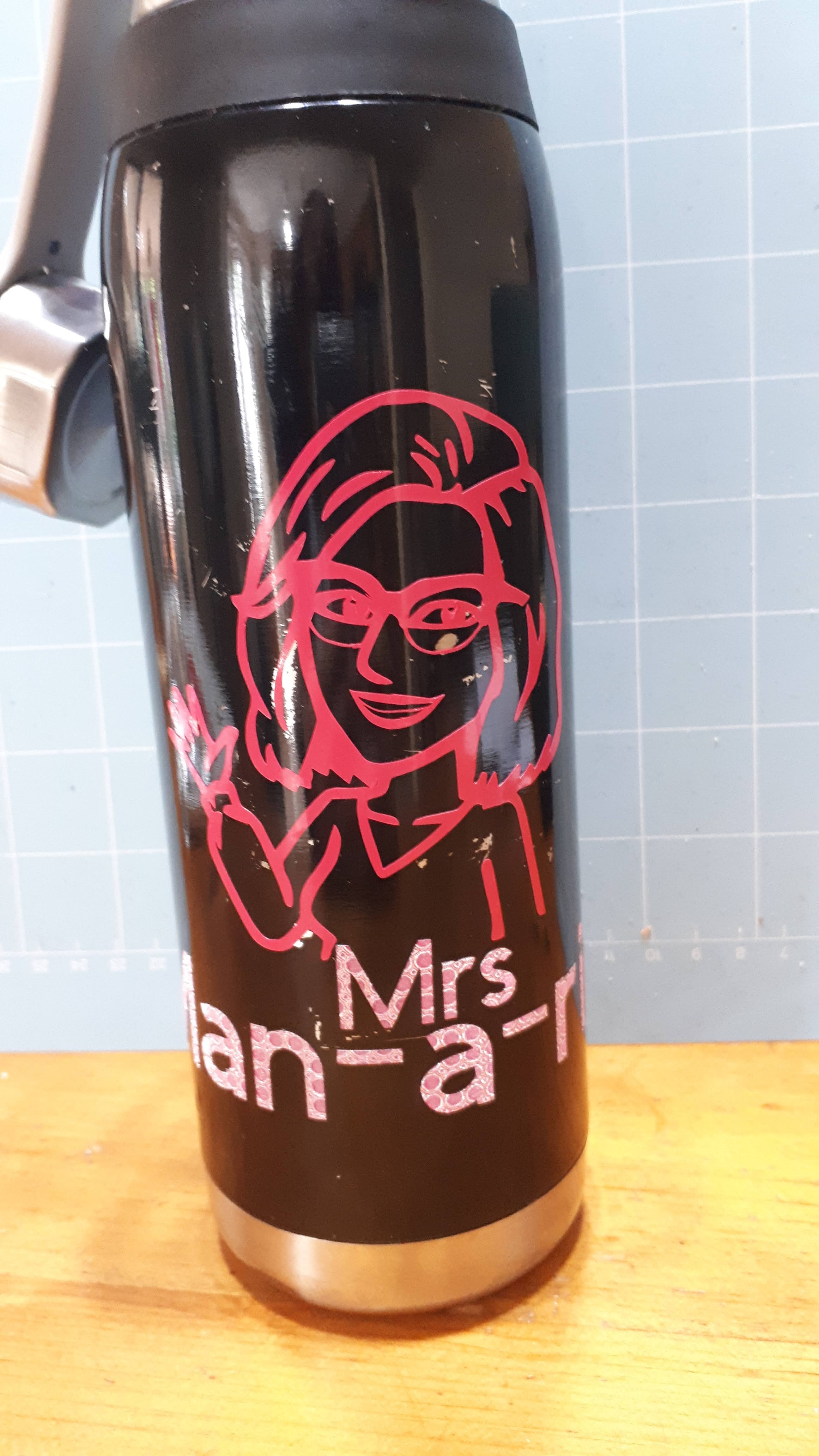 Next up---a Bitmoji image! I saw several videos on how to do this! It was going really well, but I had issues with my mouth and the thin line of the bottom of my glasses. Hugh fixed it and wow! It's adorable! I love it! I put my name as how it's pronounced. This makes it harder for students to search for me on social media LOL. I put it on my old bottle as a test. I haven't gotten around to putting it anywhere else, but I think my truck needs one.